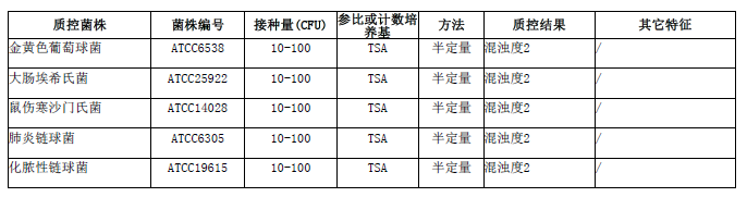 脑心浸出液肉汤(BHI)微生物质控结果: