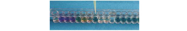 从包装盒中取出一条生化鉴定条,打开盖子,用打孔器开孔。如果染菌或变色,则不能使用,重新拿一条。注:打孔器用75%酒精擦拭后使用;本鉴定条需配套硝酸盐还原试剂、V-P试剂和卢戈氏碘液使用。
