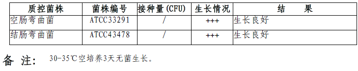 接种以下质控菌株,放置42±1℃微需氧培养24-48小时。