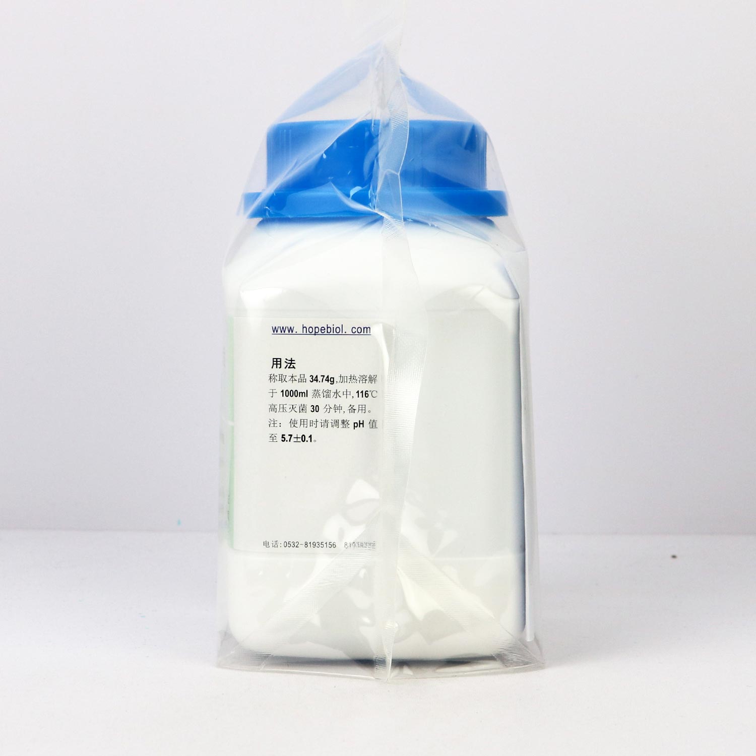 称取本品34.74g,加热溶解于1000ml蒸馏水中,116℃高压灭菌30分钟备用。