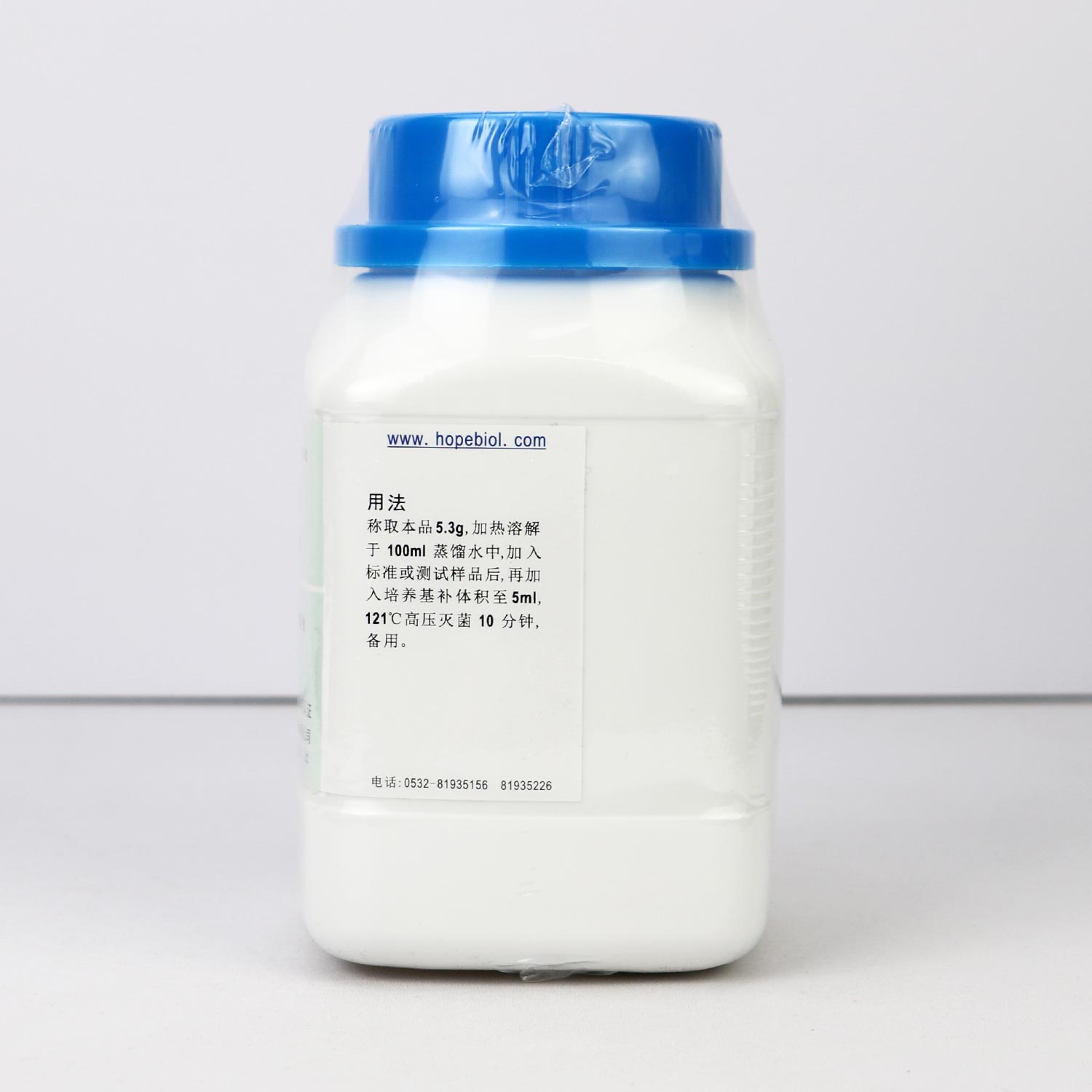称取本品 5.3g,加热溶解于 100ml 蒸馏水中,加入标准或测试样品,再加入培养基补体积至 5ml,121℃蒸汽灭菌 10 分钟,备用。