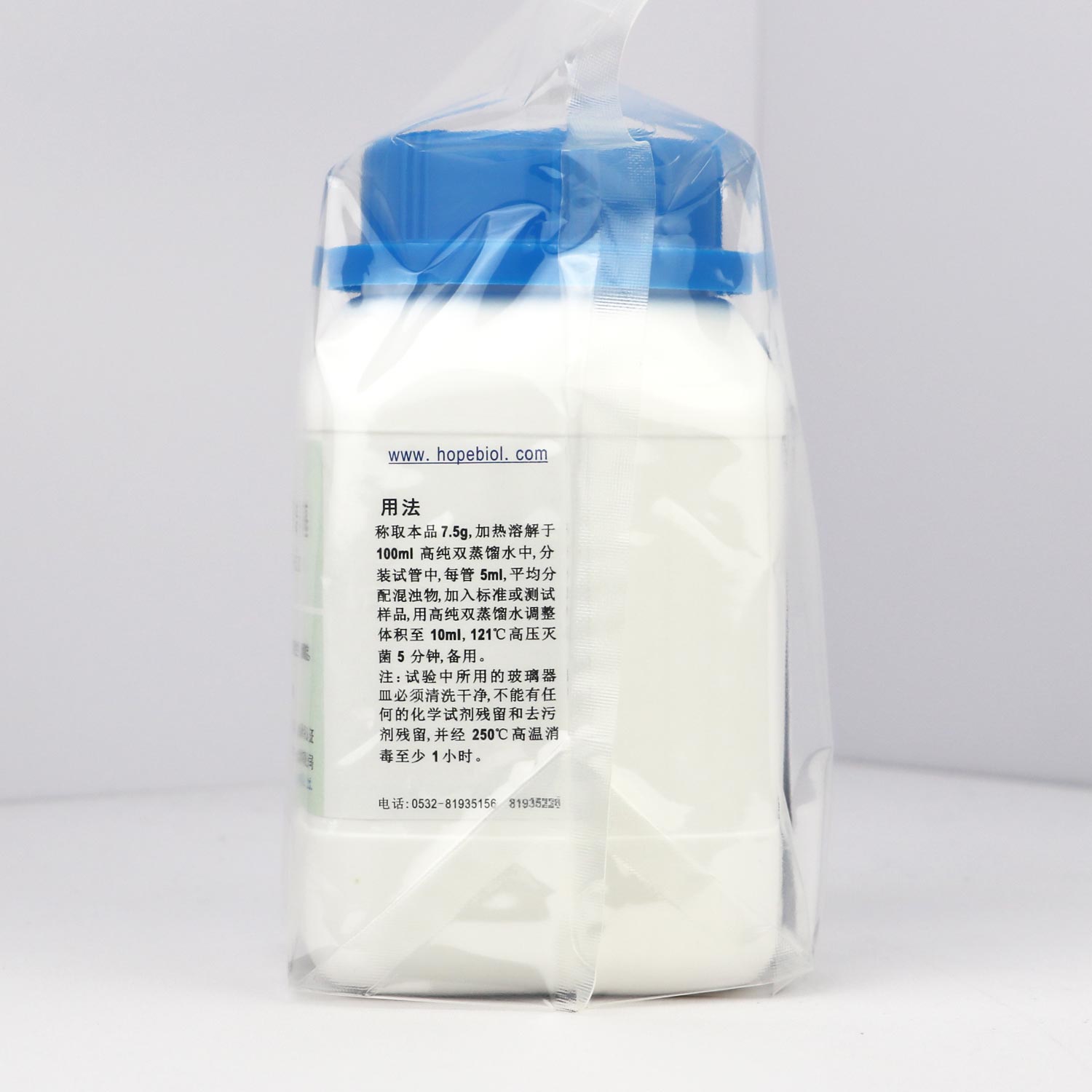 称取本品 7.5克,加热溶解于100ml高纯双蒸馏水中,分装试管中,每管5ml,加入标准或测试样品,用高纯双蒸馏水调整体积至10ml,121℃高压灭菌5分钟,备用。