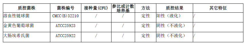 按标签用法制备培养基,接种以下质控菌株,放置36±1℃需氧培养18-24小时。