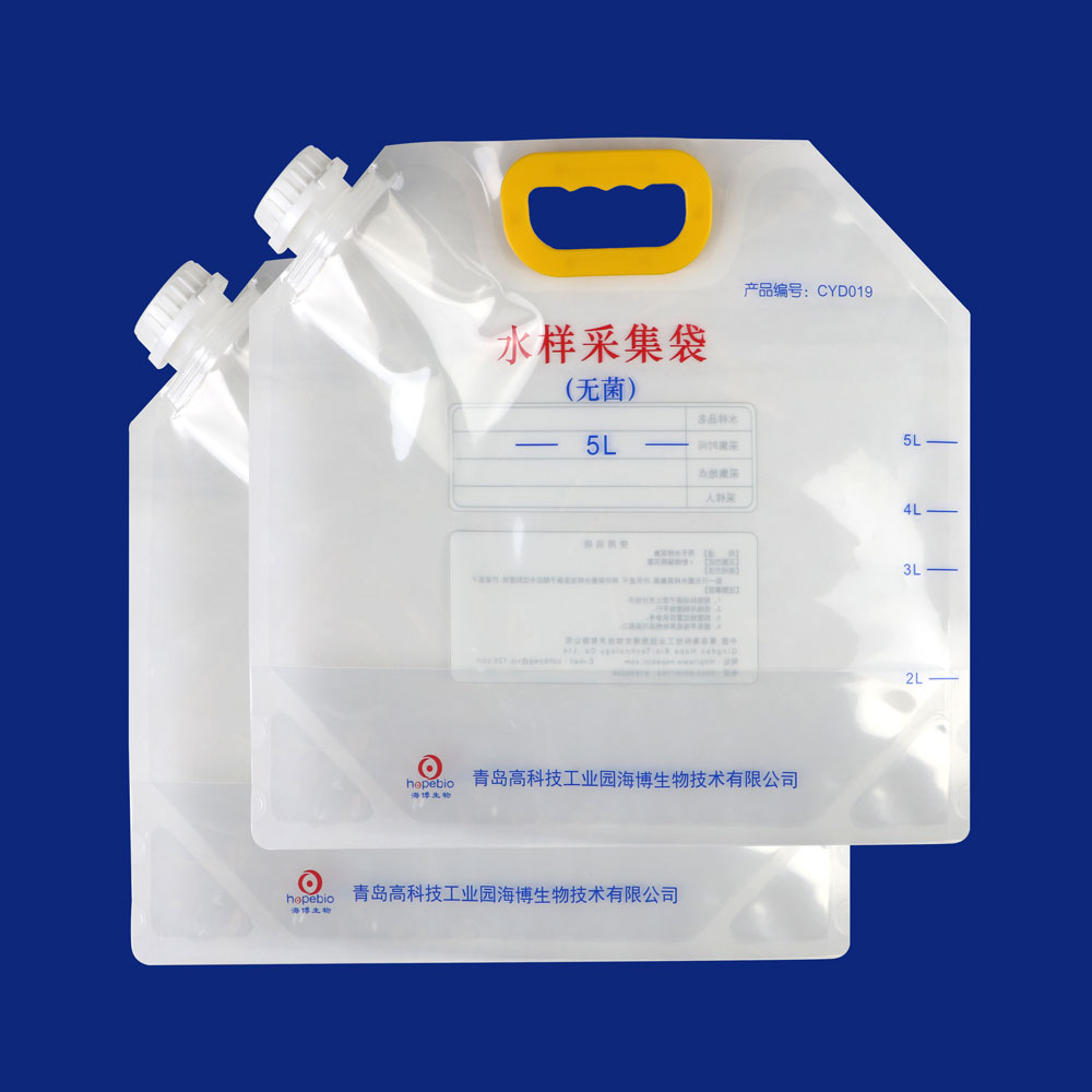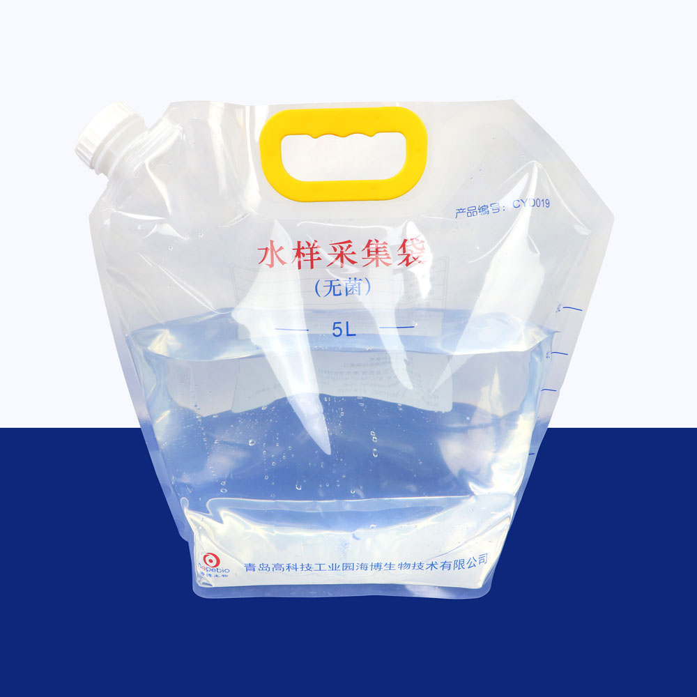 使用方法:取一只无菌水样采集袋,拧开盖子,将所采集水样加至袋子5L刻度线,拧紧盖子。