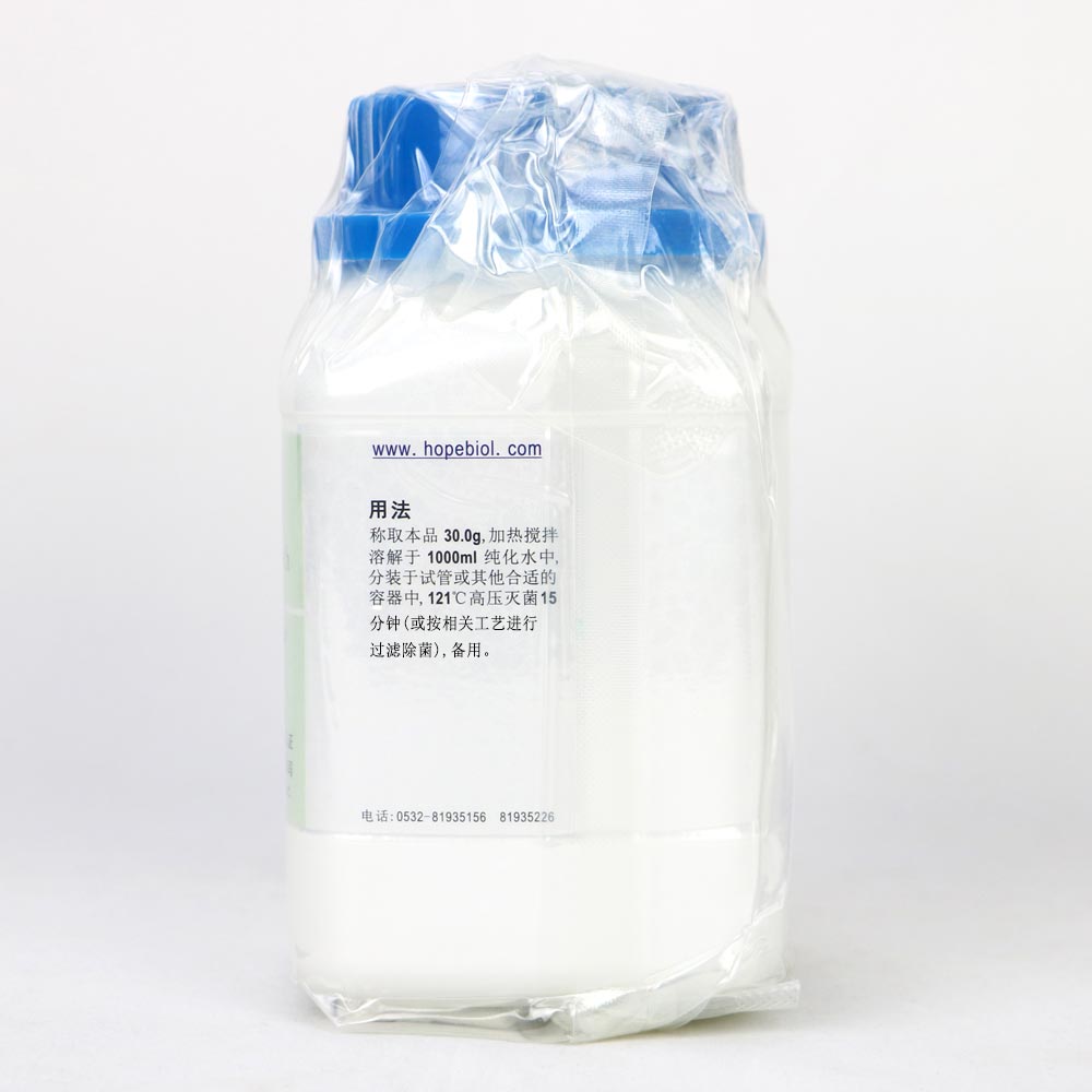 称取本品30.0g,加热搅拌溶解于1000ml蒸馏水中,分装于试管或其他合适的容器中,121℃高压灭菌15分钟(或按相关工艺进行过滤),备用。