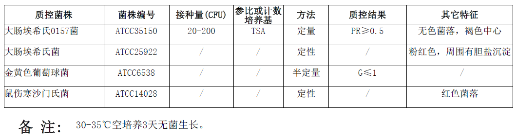 改良山梨醇麦康凯(CT-SMAC)琼脂微生物质控结果: