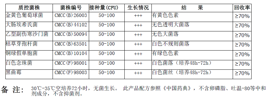 TSA表面接触皿7.5cm(2-25℃)(含中和剂)微生物灵敏度试验: