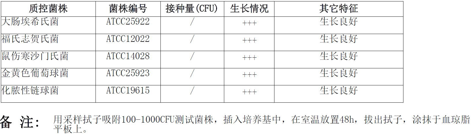 按标签用法制备培养基,接种以下质控菌株,放置20-25℃需氧培养48小时。