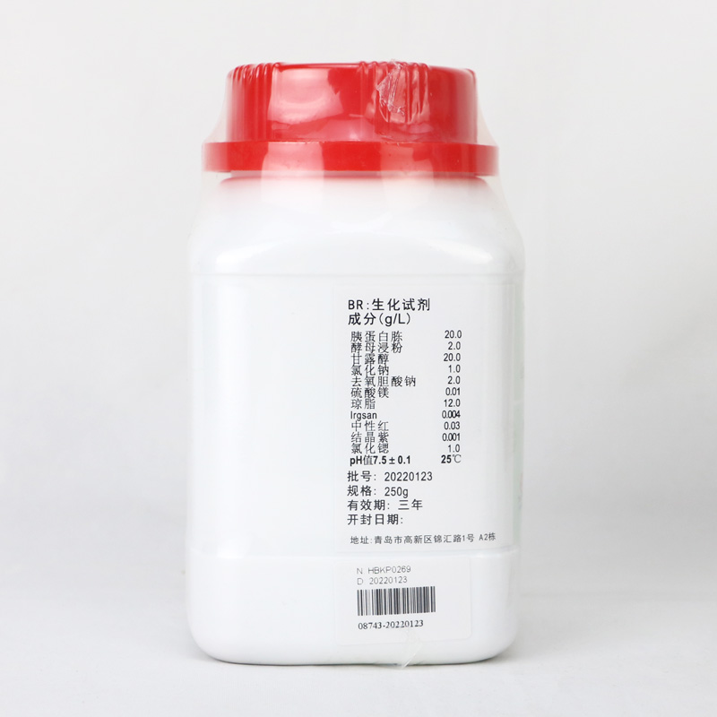 胰胨和酵母粉提供菌体生长所需要的氮源、碳源和微量元素;甘露醇作为可发酵碳源;氯化钠维持培养基体系渗透压;硫酸镁提供菌体生长的微量元素;去氧胆酸钠和结晶紫能够抑制革兰氏阳性菌;中性红作为酸碱指示剂;琼脂是培养基的凝固剂。