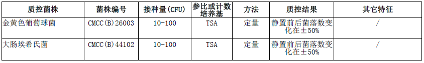 按标签用法制备培养基,接种以下质控菌株,放置20-25℃需氧培养45分钟。