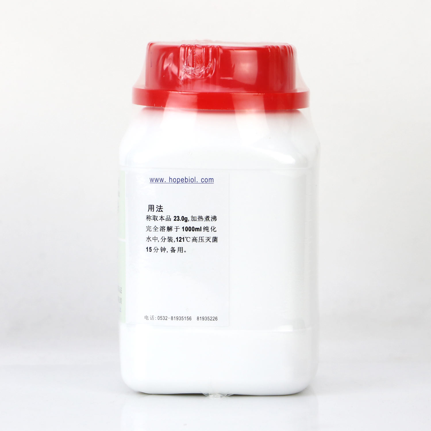 称取本品23.0g,加热煮沸完全溶解于1000ml蒸馏水中,分装,121℃高压灭菌15分钟,备用。