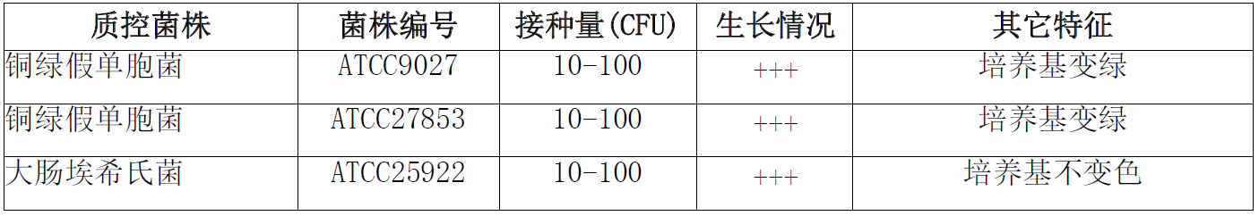 按标签用法制备培养基,接种以下质控菌株,放置35℃需氧培养48小时。