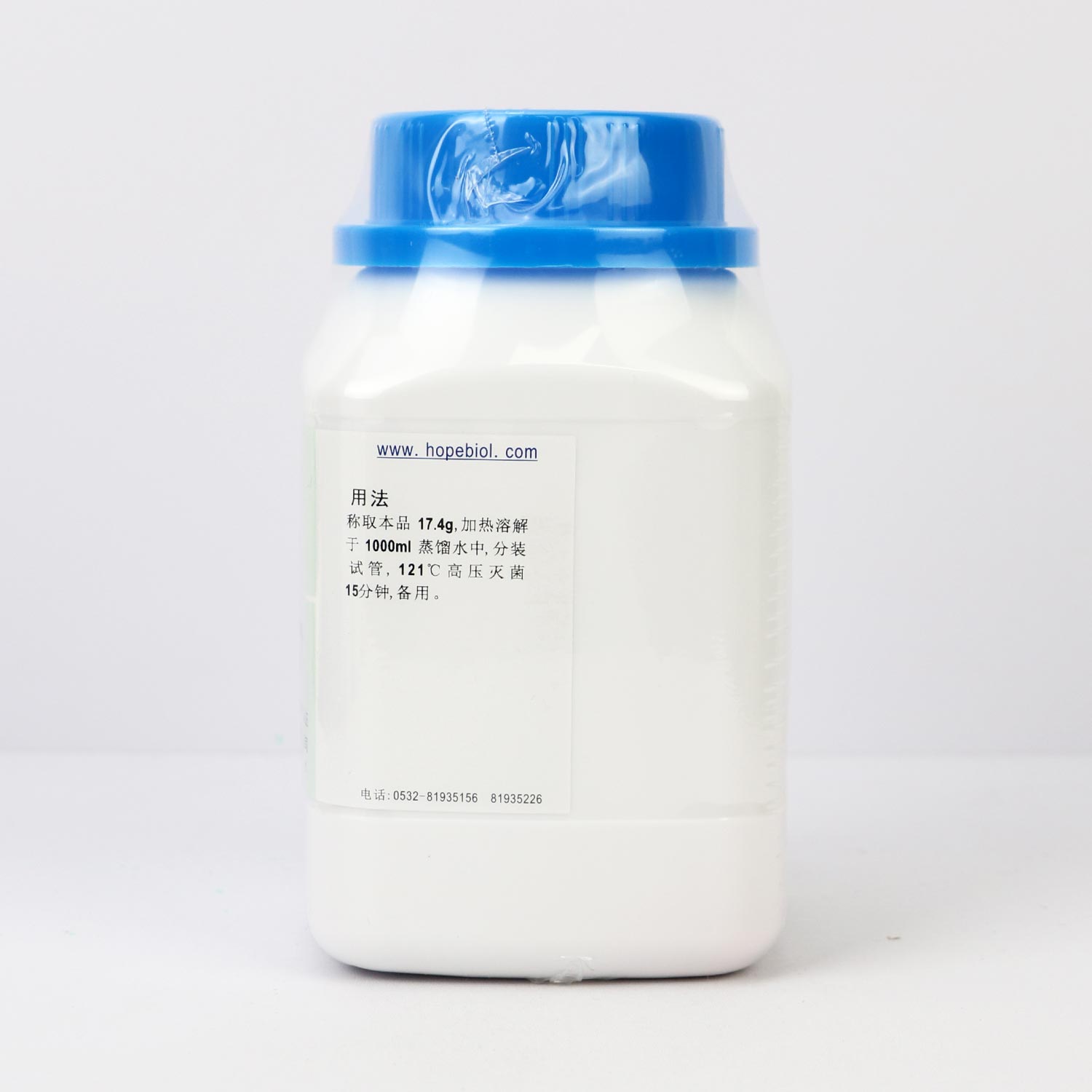 称取本品17.4g,加热溶解于1000ml蒸馏水中,分装试管,121℃高压灭菌15分钟,备用。