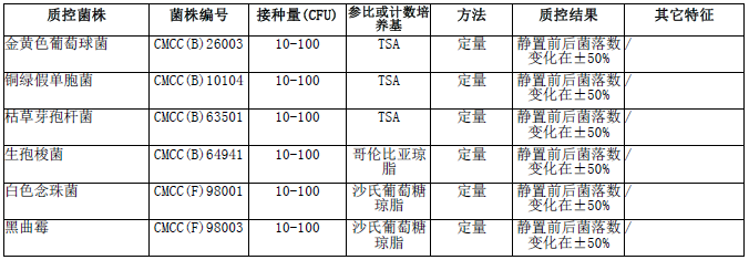 按标签用法制备培养基,接种以下质控菌株,放置20-25℃需氧培养45分钟。