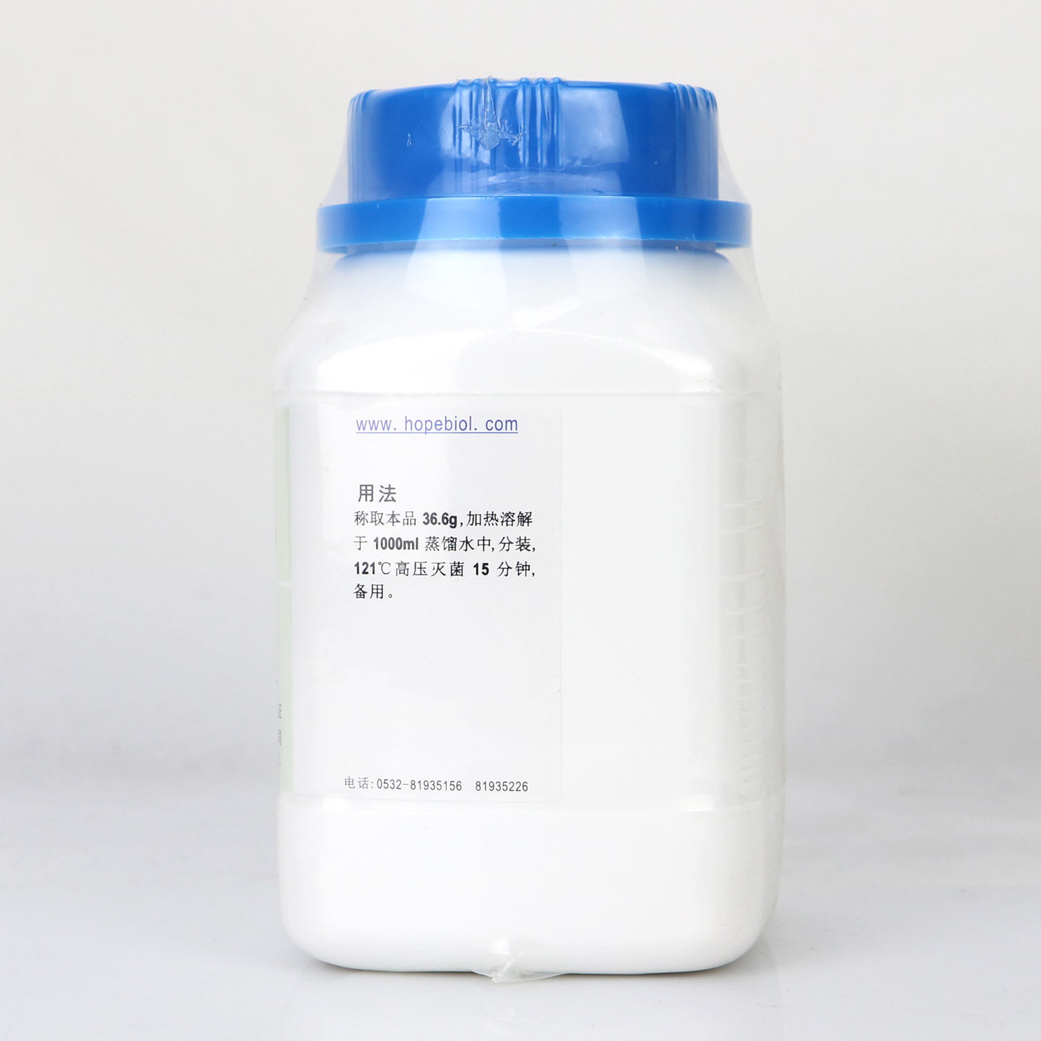 称取本品36.6g,加热溶解于1000ml蒸馏水中,分装,121℃高压灭菌15分钟,备用。