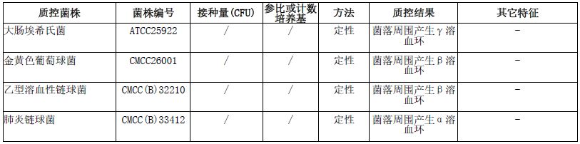 哥伦比亚血琼脂培养基平板(9cm)微生物灵敏度试验: