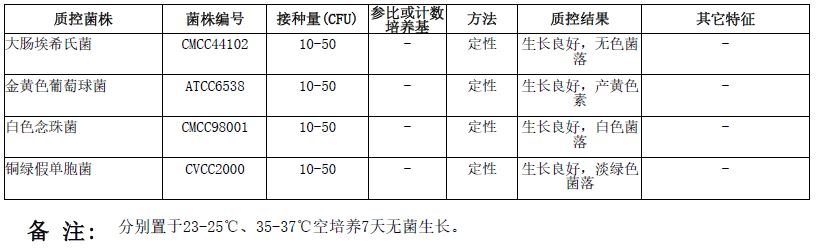GA斜面管(2020中国兽药典)微生物质控结果: