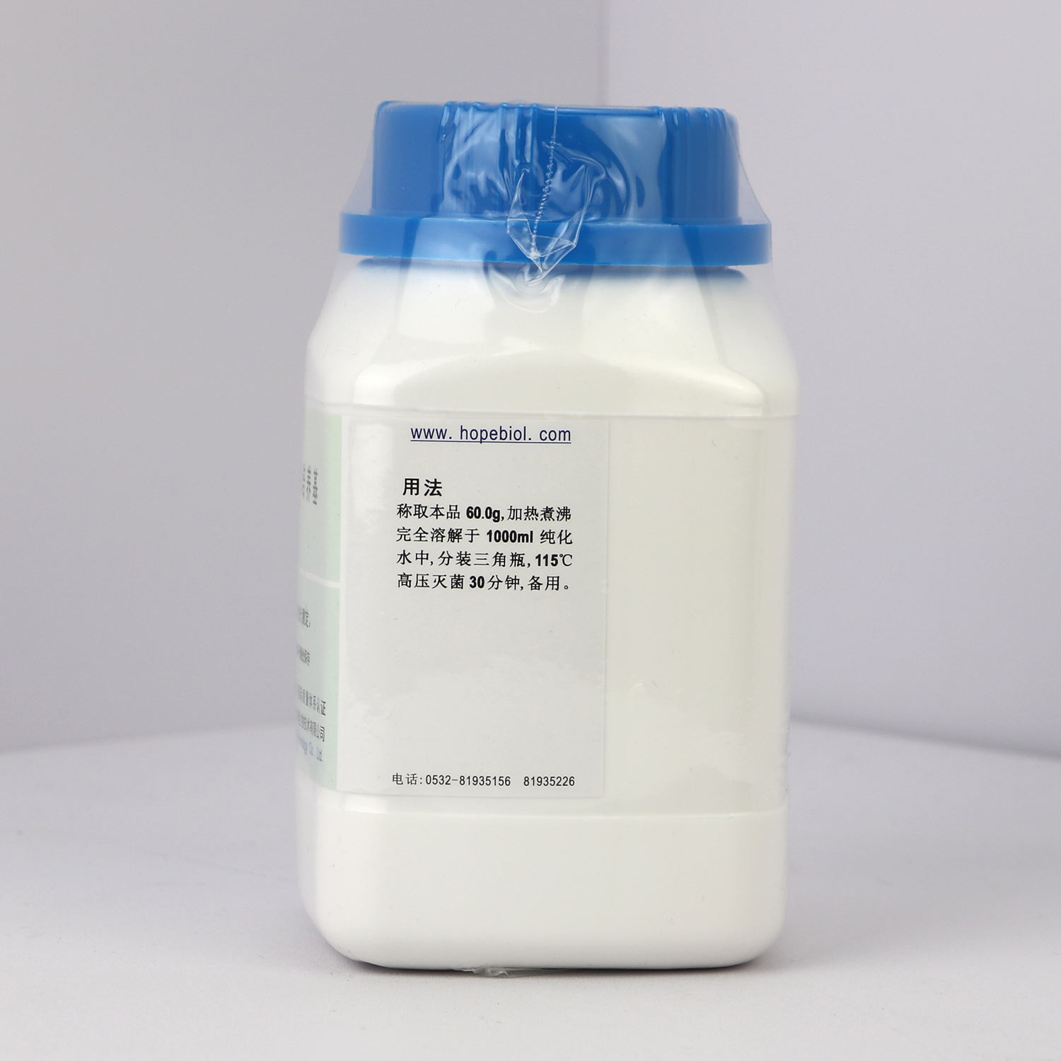 称取本品60.0g,加热煮沸完全溶解于1000ml纯化水中,分装三角瓶,115℃高压灭菌30分钟,备用。