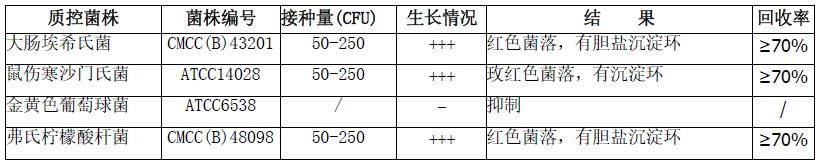 按标签用法制备培养基,接种以下质控菌株,放置36±1℃需氧培养24±2小时。