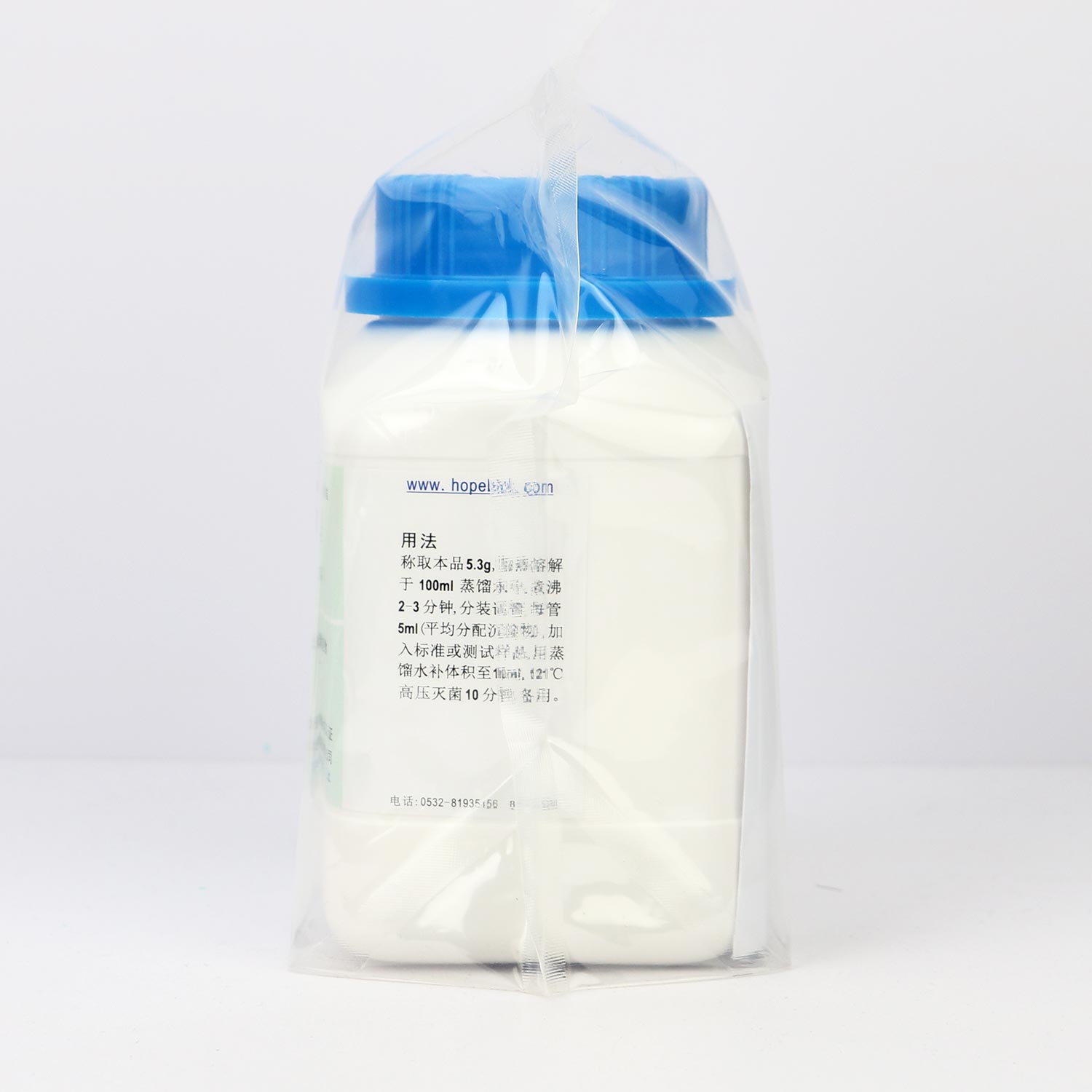 称取本品5.3g,加热溶解于100ml蒸馏水中,煮沸2-3分钟,分装试管,每管5ml(平均分配沉淀物),加入标准或测试样品,用蒸馏水补体积至10ml,121℃高压灭菌10分钟,备用。