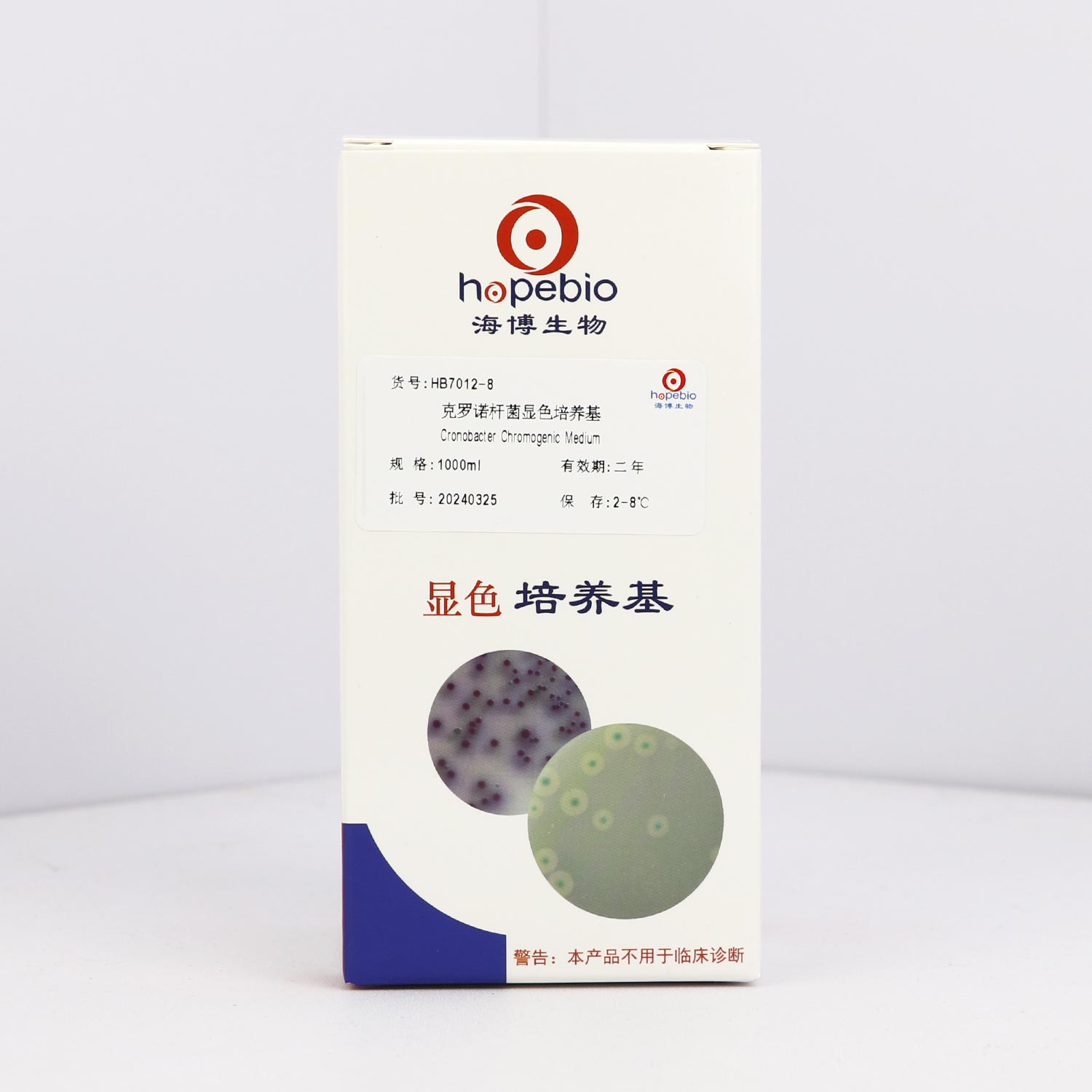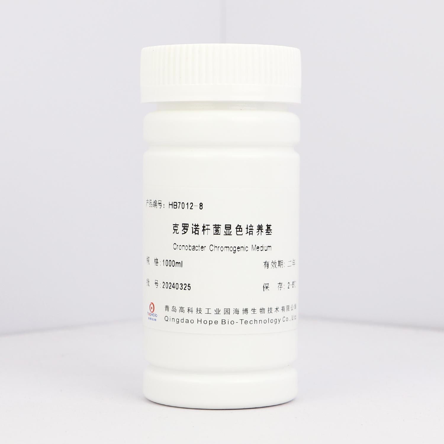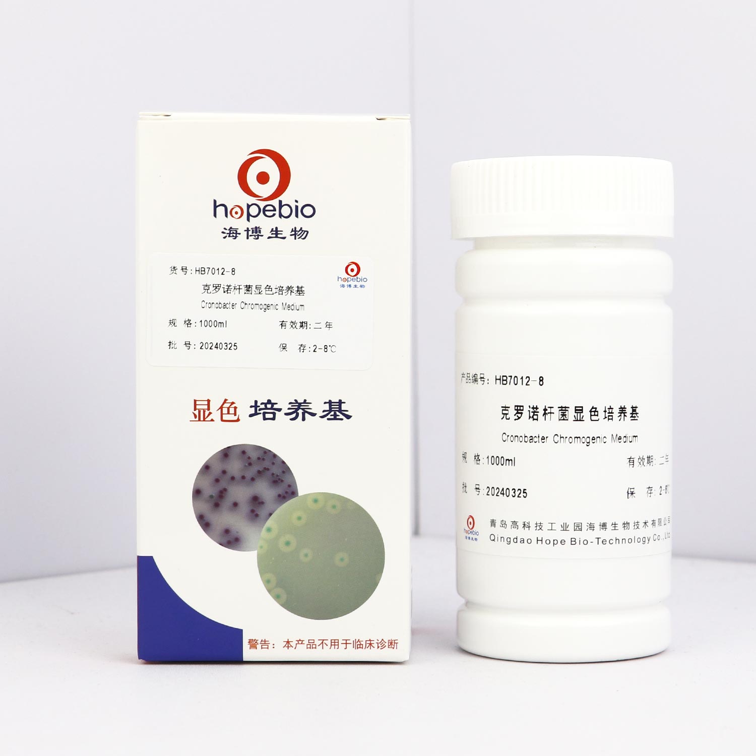 克罗诺杆菌显色培养基是青岛海博生物公司生产的培养基,用于婴儿配方奶粉和其它食品中克罗诺杆菌的快速检测。克罗诺杆菌显蓝 -绿色菌落,其它菌显无色或黄色。