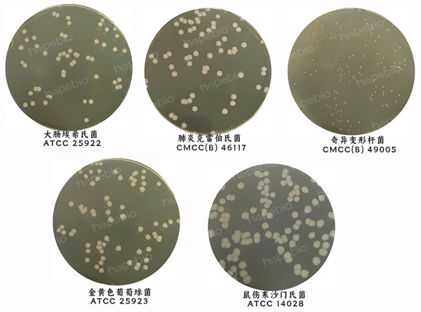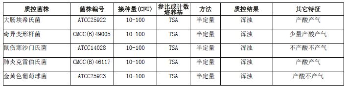 按标签用法制备培养基,接种以下质控菌株,放置36±1℃需氧培养24-48小时。