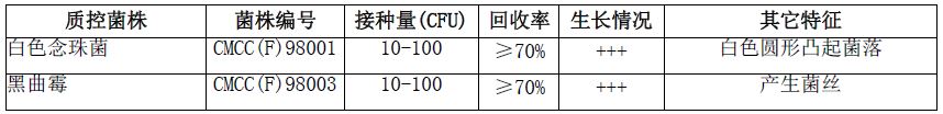 按标签用法制备培养基,接种以下质控菌株,放置20-25℃需氧培养48-72小时。