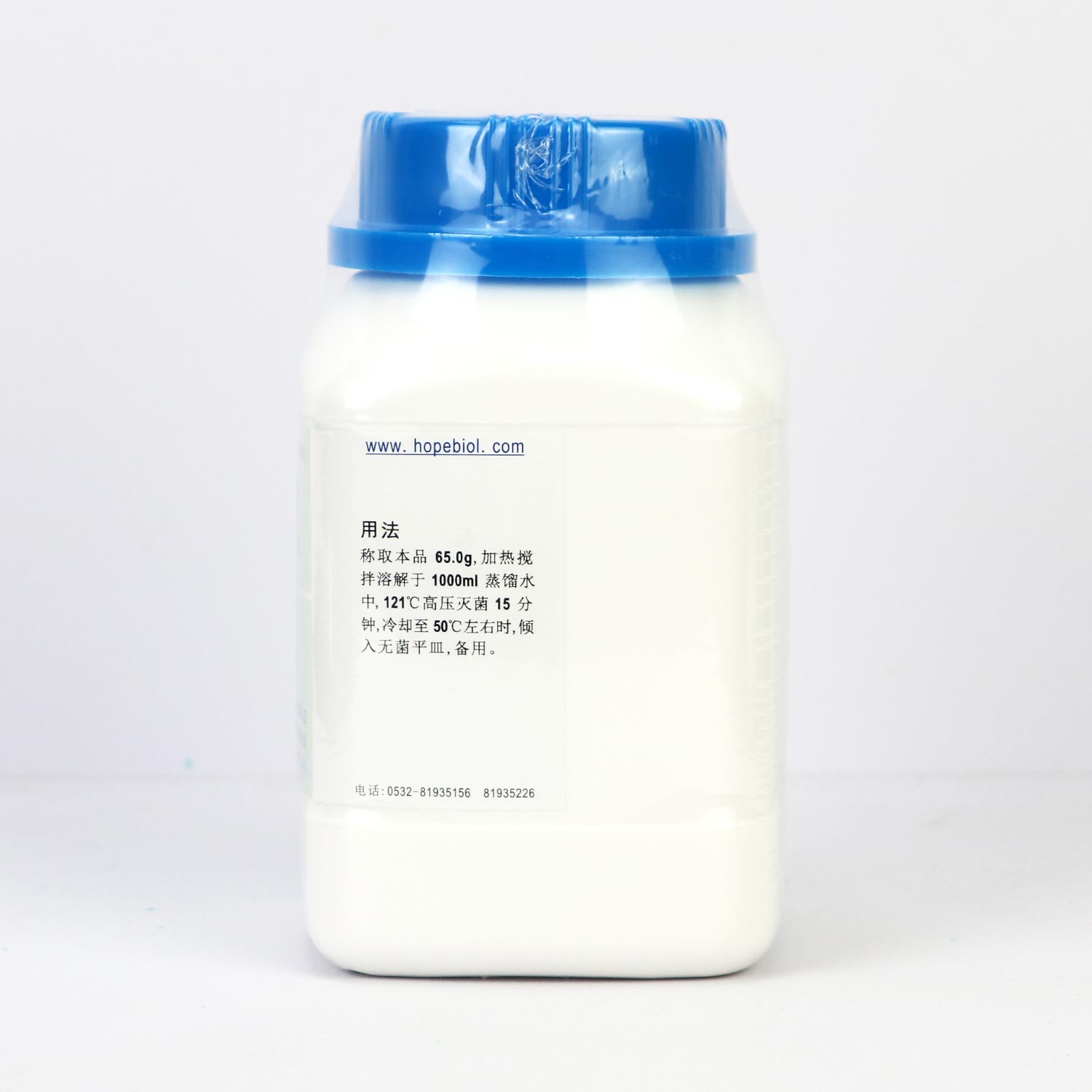 称取本品65.0g,加热搅拌溶解于1000ml蒸馏水中,121℃高压灭菌15分钟,冷却至50℃左右时,倾入无菌平皿,备用。