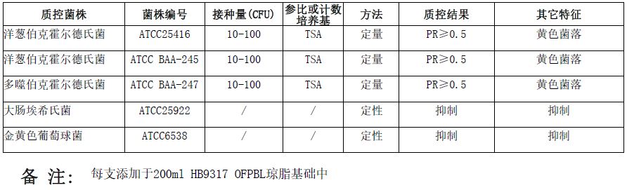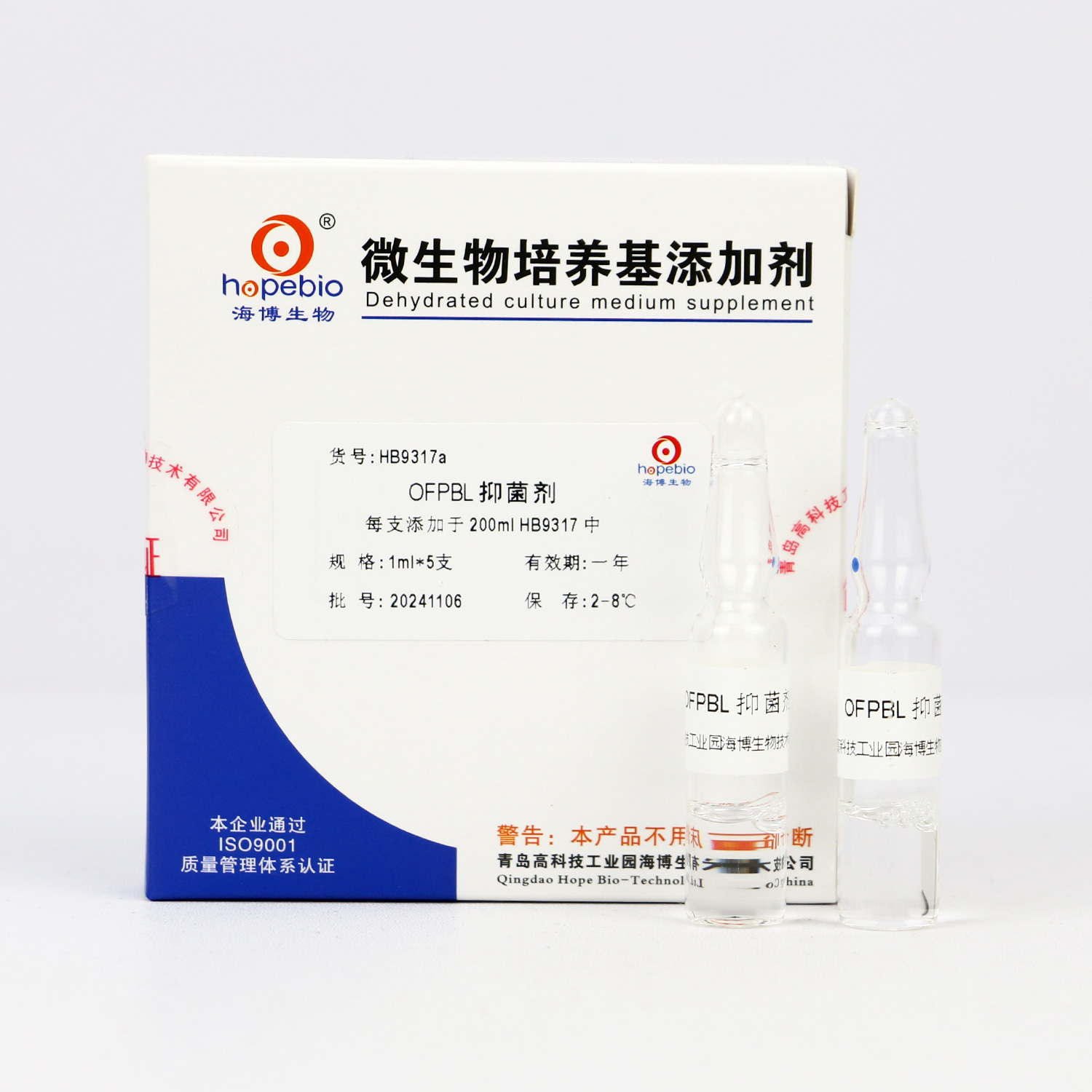 每支添加于200ml HB9317 OFPBL琼脂基础中。
