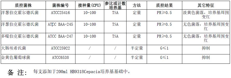 Cepacia培养基抑菌剂微生物灵敏度试验: