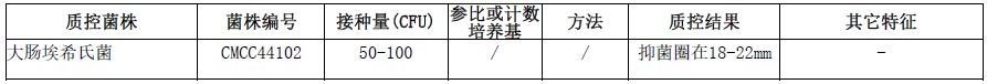 按标签用法制备培养基,接种以下质控菌株,放置36℃需氧培养18-24小时。