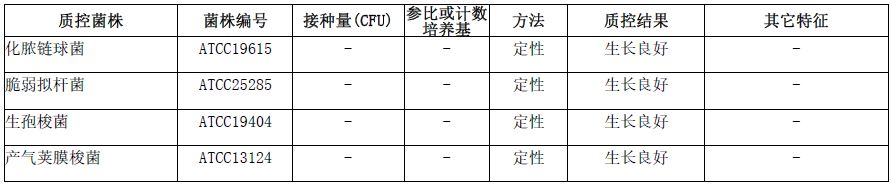 按标签用法制备培养基,接种以下质控菌株,放置36±1℃厌氧培养48-72小时。