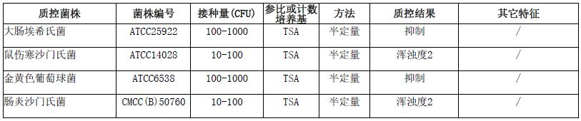 RV沙门菌增菌液体培养基管(USP)(10ml)微生物灵敏度试验: