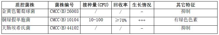 按标签用法制备培养基,接种以下质控菌株,放置30-35℃需氧培养18-72小时。