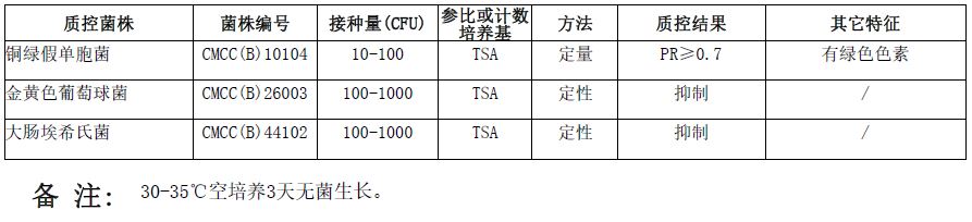 明胶胰酶水解物提供碳氮源、维生素和生长因子;溴化十六烷基三甲铵为选择性抑菌剂,作为一种季铵盐阳离子去污剂可释放细菌细胞中的氮和磷而抑制非绿脓杆菌的细菌;琼脂是培养基的凝固剂。