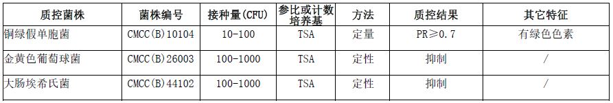 明胶胰酶水解物提供碳氮源、维生素和生长因子;溴化十六烷基三甲铵为选择性抑菌剂,作为一种季铵盐阳离子去污剂可释放细菌细胞中的氮和磷而抑制非绿脓杆菌的细菌;琼脂是培养基的凝固剂。