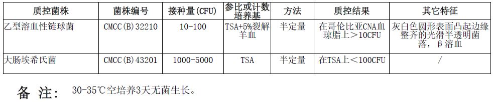 按标签用法制备培养基,接种以下质控菌株,放置36±1℃需氧培养18-24小时。