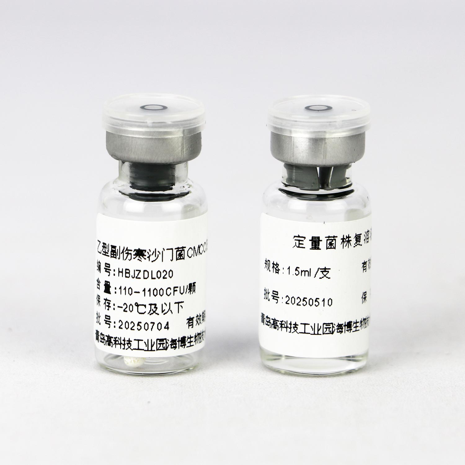 (2) 无菌操作打开定量菌株瓶塞,用移液器吸取1 .1mL复溶液加入西林瓶中,盖上瓶塞,涡旋震荡5~10s,使小球完全溶解。