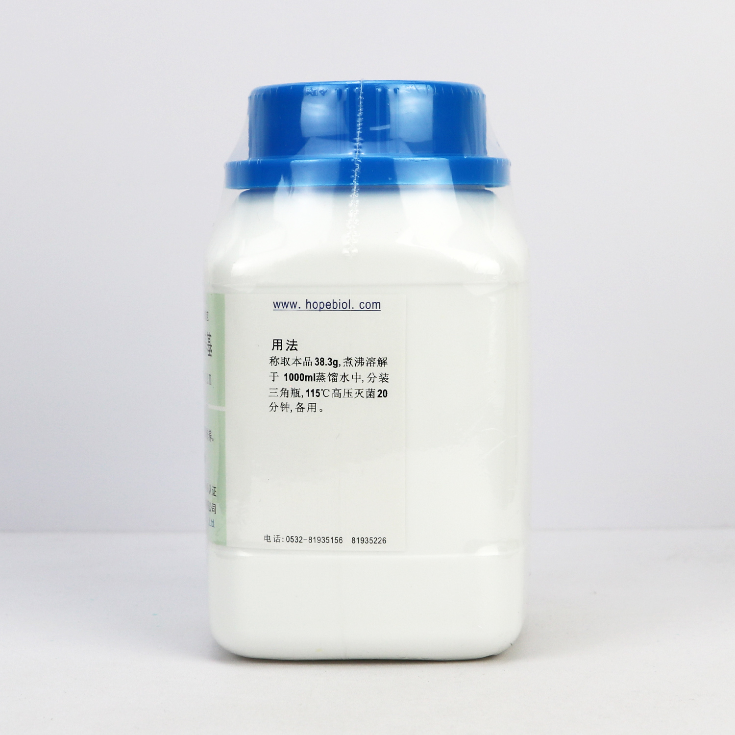 称取本品38.3g,煮沸溶解于1000ml蒸馏水中,分装三角瓶,115℃高压灭菌20分钟,备用。