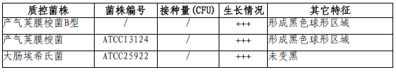 按标签用法制备培养基,接种以下质控菌株,放置55℃厌氧培养48小时。