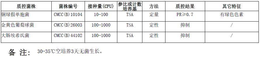 溴化十六烷基三甲铵琼脂(CEA)(袋装即用型)(100ml)(药典)微生物灵敏度试验: