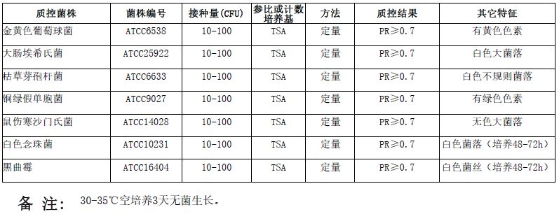 按标签用法制备培养基,接种以下质控菌株,放置30-35℃需氧培养18-24小时。