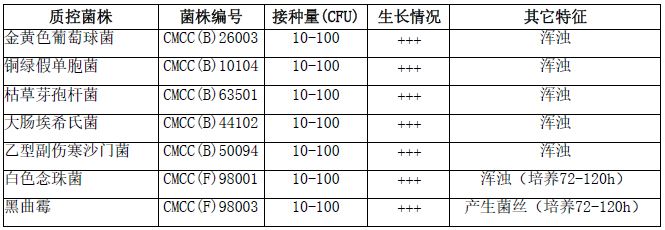 按标签用法制备培养基,接种以下质控菌株,放置30-35℃需氧培养18-24小时。