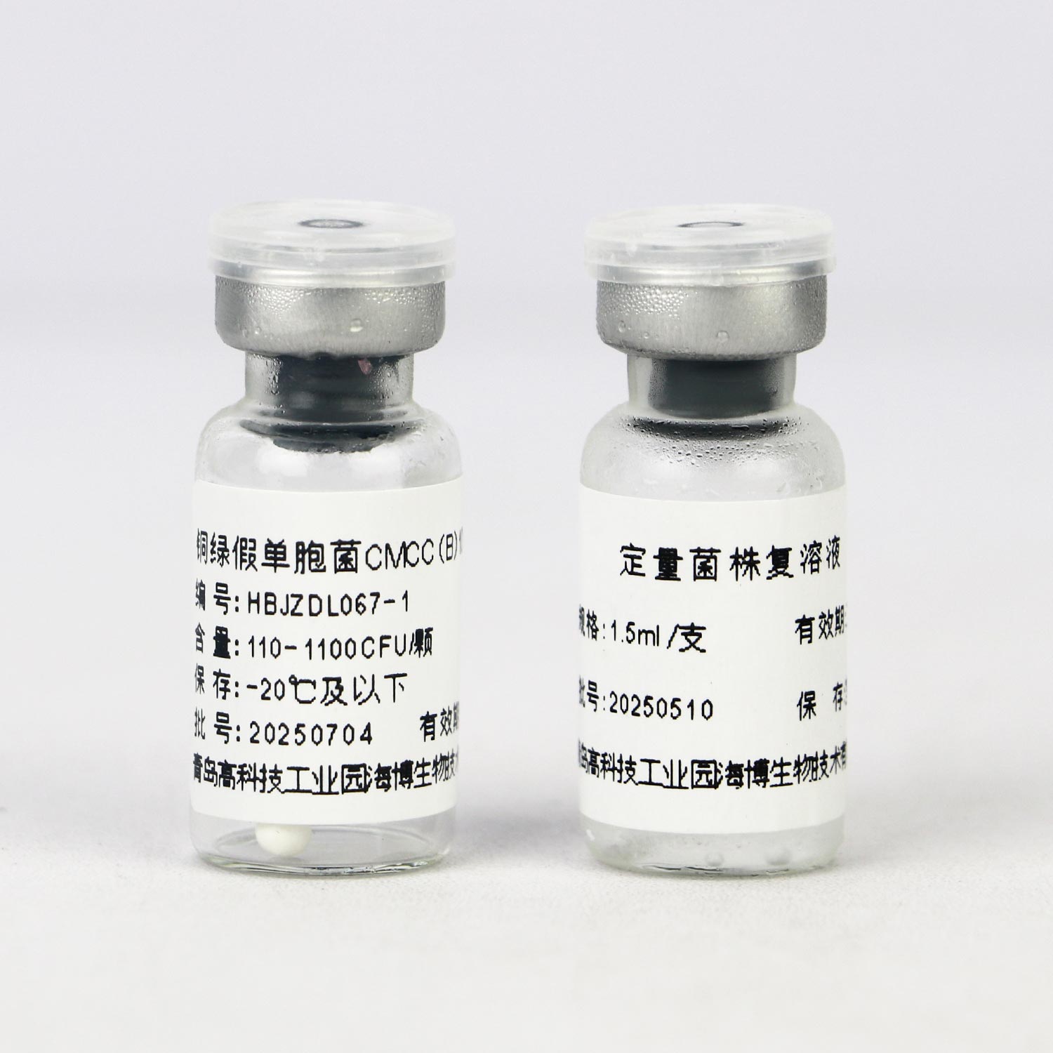 (2) 无菌操作打开定量菌株瓶塞,用移液器吸取1.1mL复溶液加入西林瓶中,盖上瓶塞,涡旋震荡5~10s,使小球完全溶解。