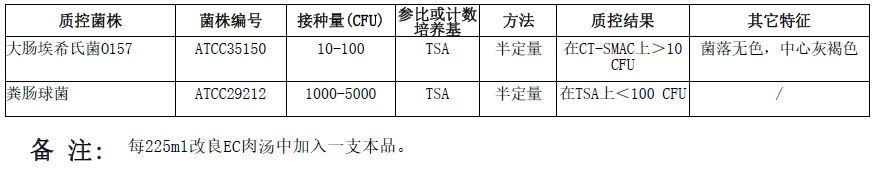 用途:每支添加于225ml改良EC(MEC+n)肉汤或mEC肉汤或mTSB肉汤中。