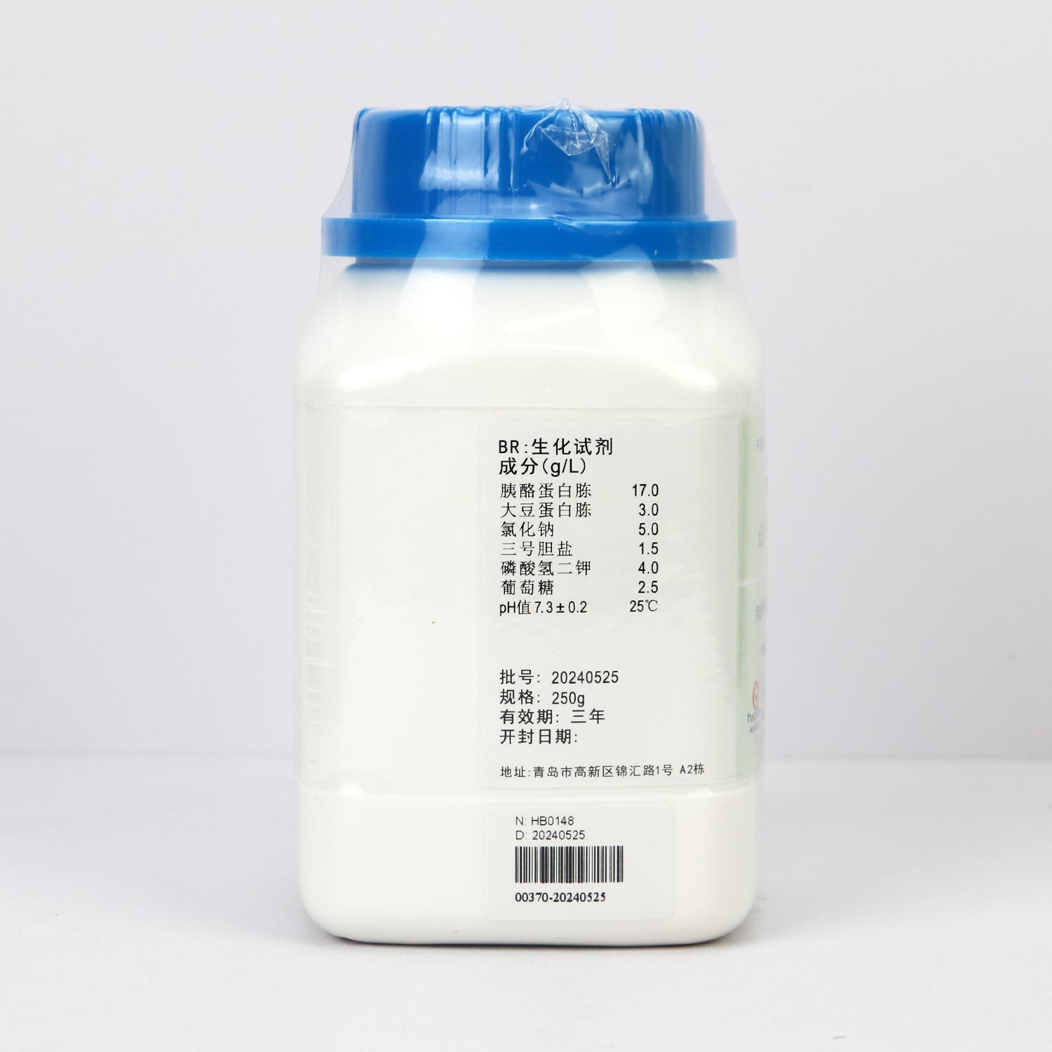 胰酪蛋白胨和大豆蛋白胨提供碳源、氮源、维生素和生长因子;氯化钠维持均衡的渗透压;三号胆盐和新生霉素可抑制革兰氏阳性菌的生长;磷酸氢二钾是培养基pH缓冲剂;葡萄糖作为可发酵的糖类。