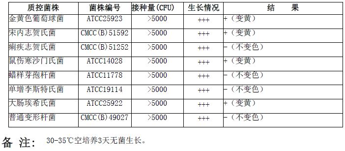 接种以下质控菌株,放置35±1℃需氧培养24-48小时。