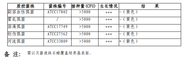 接种以下质控菌株,放置36±1℃需氧培养24±3小时。