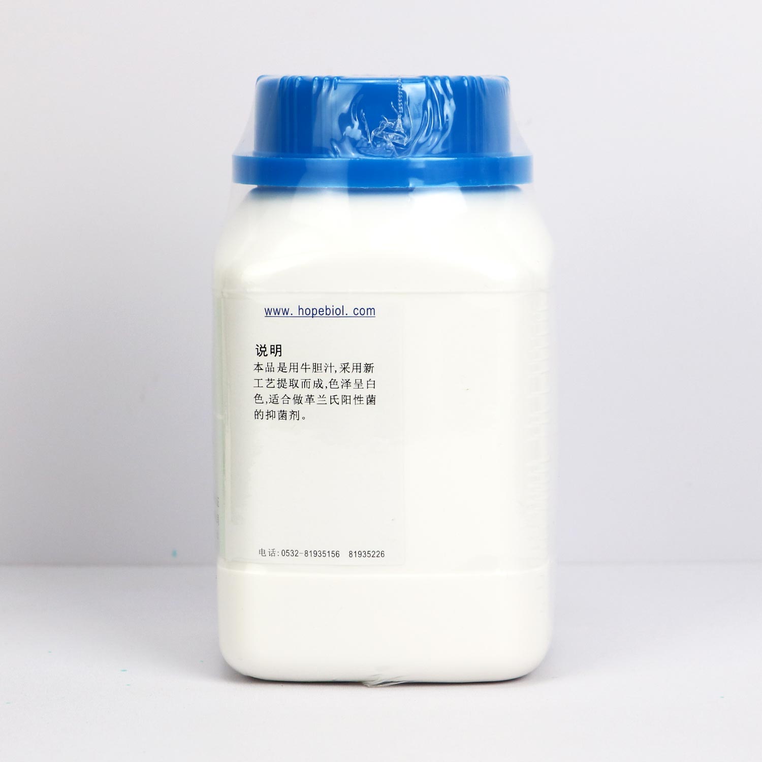 本品是用牛胆汁,采用新工艺提取而成,色泽呈白色,适合做革兰氏阳性菌的抑菌剂。