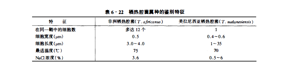 栖热腔菌属内种的鉴别特征列于表 6~22。